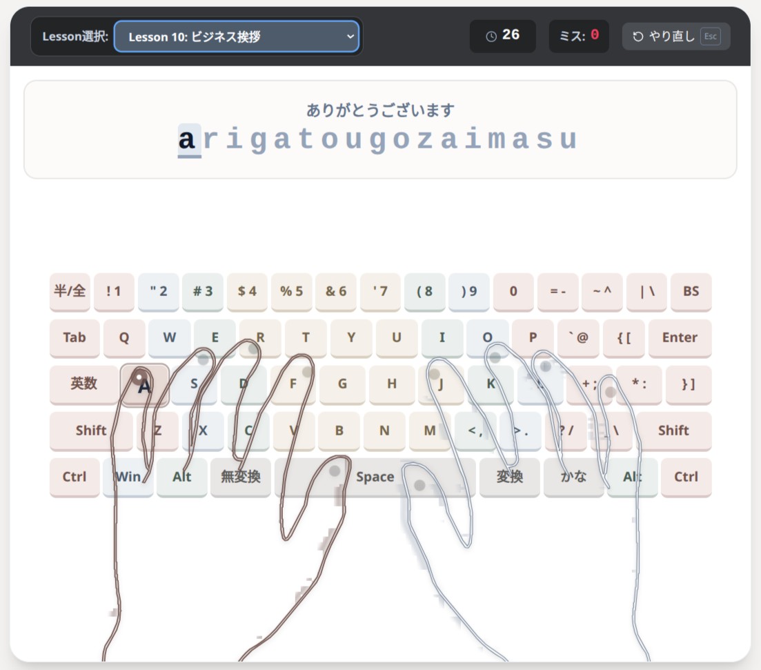 本サービスで記録されるタイピングのスコアや履歴等のデータは、原則としてユーザーのブラウザ内(ローカルストレージ)にのみ保存されます。本校がサーバー上で個人を特定する形でデータを収集・分析・第三者へ提供することはありません。また、データの消失について本校は一切の保証をいたしません。